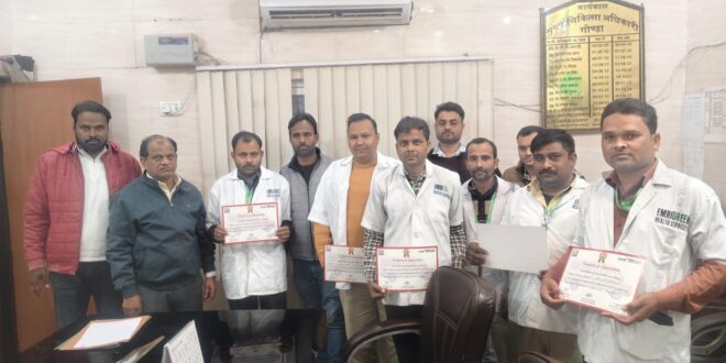 जनपद गोण्डा में ई.एम.आर.आई. ग्रीन हेल्थ सर्विसेस संस्था द्वारा संचालित 102/108 एम्बुलेंस सेवा में उत्कृष्ट कार्य करने वाले इमरजेंसी मेडिकल टेक्नीशियन (ईएमटी) एवं पायलटों को मुख्य चिकित्सा अधिकारी डॉ. संत कुमार पटेल द्वारा प्रशस्ति पत्र देकर सम्मानित किया गया।