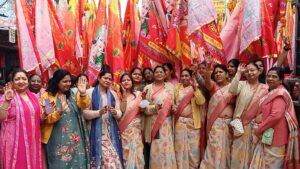 धूमधाम से निकली सप्तरंगी निशान शोभायात्रा..