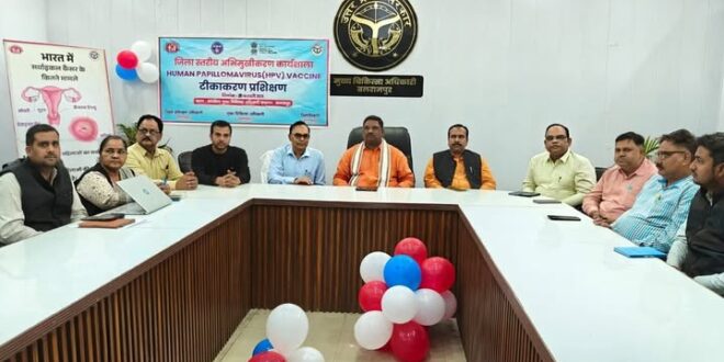 बलरामपुर। देश के प्रधानमंत्री नरेन्द्र मोदी द्वारा राजस्थान के अजमेर से ह्यूमन पैपिलोमा वायरस (एचपीवी) वैक्सीन के टीकाकरण कार्यक्रम का विधिवत शुभारंभ किया गया। इस अवसर का सजीव प्रसारण मुख्य चिकित्सा अधिकारी कार्यालय सभागार, बलरामपुर में आयोजित किया गया, जिसमें जनपद के जनप्रतिनिधि एवं स्वास्थ्य विभाग के अधिकारीगण उपस्थित रहे।