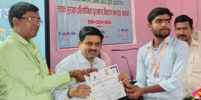 शासन एवं परिवहन विभाग, उत्तर प्रदेश के निर्देशानुसार आयोजित जनपदीय सड़क सुरक्षा प्रतियोगिता में उत्कृष्ट प्रदर्शन करने वाले प्रतिभागियों के सम्मान में आज महामाया राजकीय महाविद्यालय, श्रावस्ती में पुरस्कार वितरण समारोह का आयोजन किया गया।