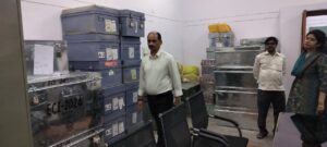 निरीक्षण के दौरान दीवारों पर परिलक्षित नमी को गंभीरता से लेते हुए जिलाधिकारी ने मरम्मत कराए जाने तथा पूरे ट्रेज़री परिसर की समुचित रंगाई-पुताई कर परिसर को सुव्यवस्थित व आकर्षक बनाए रखने के निर्देश दिए। साथ ही, लगभग एक दशक पूर्व आयोजित लेखपाल एवं अन्य परीक्षाओं से संबंधित अभिलेख,प्रश्नपत्र, जो अभी तक सुरक्षित रखे हैं, उन्हें नियमानुसार अभिलेखागार से निष्पादित कर हटाए जाने के भी निर्देश दिए।