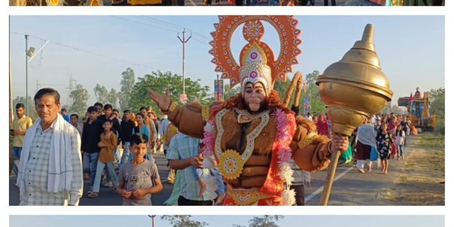 दर्जनों बुलडोजरों पर सजी हनुमान जी की भव्य और दिव्य झांकियां, मानो स्वयं पवनपुत्र नगर भ्रमण पर निकले हों…