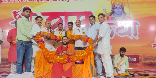 गोंडा के आर्यनगर में स्वर्गीय श्री गंगा प्रसाद मिश्रा एडवोकेट की प्रथम पुण्यस्मृति के अवसर पर आयोजित चार दिवसीय श्रीराम कथा के तृतीय दिवस में कथा व्यास स्वामी प्रणव पुरी जी महाराज द्वारा अत्यंत भावपूर्ण प्रसंगों का वर्णन किया गया।