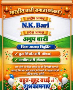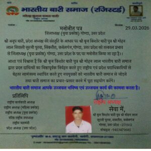 अंत में उन्होंने “जय बारी समाज” का उद्घोष करते हुए सभी के सहयोग और समर्थन की अपील की।