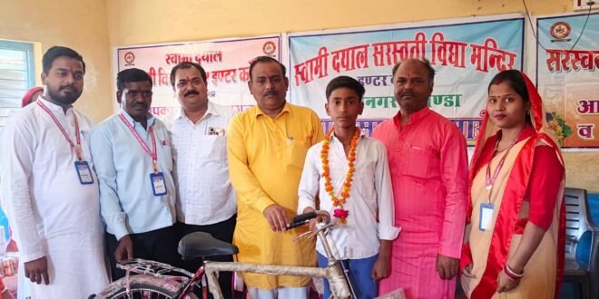 Gonda। आर्यनगर स्थित Swami Dayal Saraswati Vidya Mandir Inter College में सोमवार को प्रतिभा सम्मान समारोह का आयोजन किया गया। इस अवसर पर प्रत्येक कक्षा में सर्वश्रेष्ठ अंक प्राप्त करने वाले छात्र-छात्राओं को पुरस्कार देकर सम्मानित किया गया और उनके उत्साह वर्धन पर जोर दिया गया।