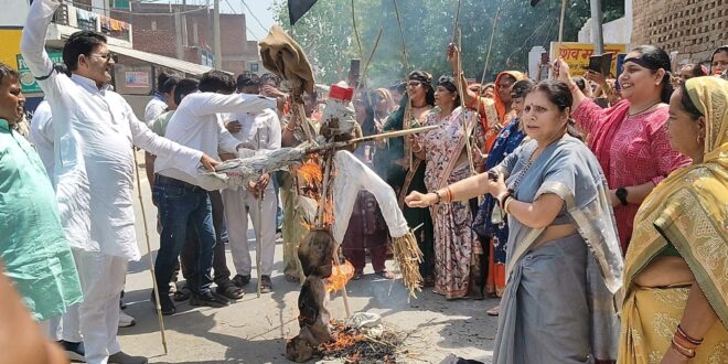 कन्नौज- भाजपा का महाआक्रोश, राहुल-अखिलेश के पुतले किए आग के हवाले
