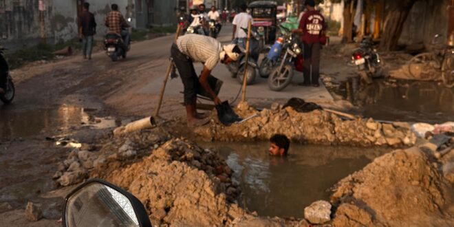 अलीगढ़। शहर में स्मार्ट सिटी के नाम पर विकास कार्यों के दावे किए जा रहे हैं, लेकिन मजदूरों की सुरक्षा को लेकर लापरवाही उजागर हो रही है। सिविल लाइन क्षेत्र स्थित तिकोना पार्क के पास अख्तर टी स्टॉल के नजदीक सफाई कर्मियों को बिना सुरक्षा उपकरण के सीवर की सफाई करते देखा गया।