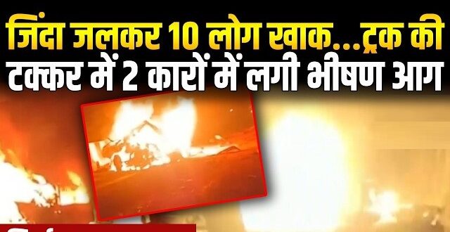 उत्तर प्रदेश के मिर्ज़ापुर से दिल दहला देने वाली खबर सामने आई है, जहां एक भीषण सड़क हादसे में कई लोगों के जिंदा जलने की आशंका जताई जा रही है। ट्रक, ट्रेलर और दो कारों की भिड़ंत के बाद वाहनों में आग लग गई, जिससे अफरा-तफरी मच गई।