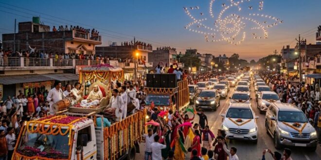 बिहार के भोजपुर जिले से एक ऐसी तस्वीर सामने आई है जिसने मृत्यु के प्रति लोगों के नजरिए को बदल कर रख दिया है। अमूमन जहां मौत के बाद घरों में मातम छा जाता है, वहीं शाहपुर नगर पंचायत के दिलमपुर में एक परिवार ने अपनी बुजुर्ग दादी की अंतिम विदाई को किसी ‘राजसी उत्सव’ की तरह मनाया। लग्जरी गाड़ियां, आसमान में उड़ते 100 से ज्यादा ड्रोन, और दर्जनों बैंड-बाजे—यह नजारा किसी शादी की बारात का नहीं, बल्कि 100 साल के करीब पहुंच चुकीं कौशल्या देवी की अंतिम यात्रा का था।
