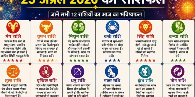 25 अप्रैल 2026 का राशिफल: जानें सभी 12 राशियों का आज का भाग्य और दिन कैसा रहेगा?