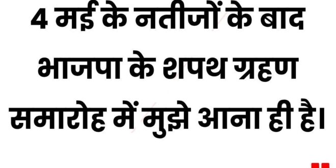 प्रधानमंत्री ने कहा कि वह दिन-रात, मौसम या परिस्थितियों की परवाह किए बिना जनता के बीच काम करते हैं। “जब से घर छोड़ा है, आपके बीच रहकर ही मुझे सुकून मिलता है,” उन्होंने कहा। उन्होंने यह भी दावा किया कि जिस तरह का जनसमर्थन उन्हें देखने को मिला है, उससे लगता है कि 4 तारीख के बाद शपथ ग्रहण समारोह में शामिल होना तय है।