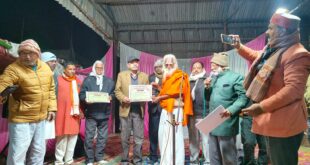 आशा पाठक की खास रिपोर्ट बहराइच। गोस्वामी तुलसीदास के ननिहाल दहौरा में माघी पूर्णिमा की पूर्व संध्या पर आयोजित कवि सम्मेलन एवं सम्मान समारोह में सनातन धर्म परिषद के संस्थापक डॉ. स्वामी भगवदाचार्य द्वारा साहित्यकार एवं आयुर्वेदिक चिकित्सक डॉ. अशोक पाण्डेय ‘गुलशन’ को श्री हुलसी सम्मान से सम्मानित किया गया। …